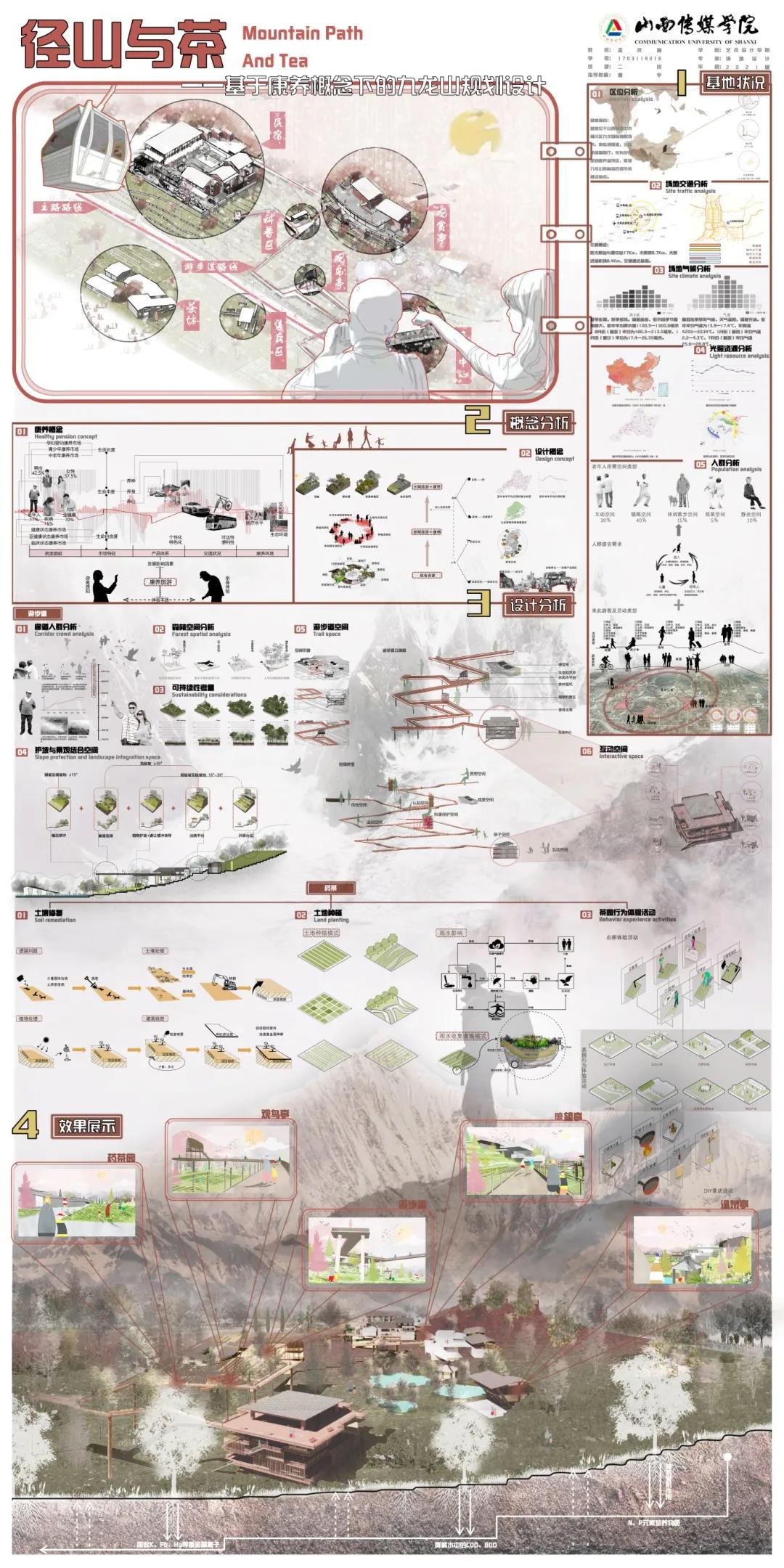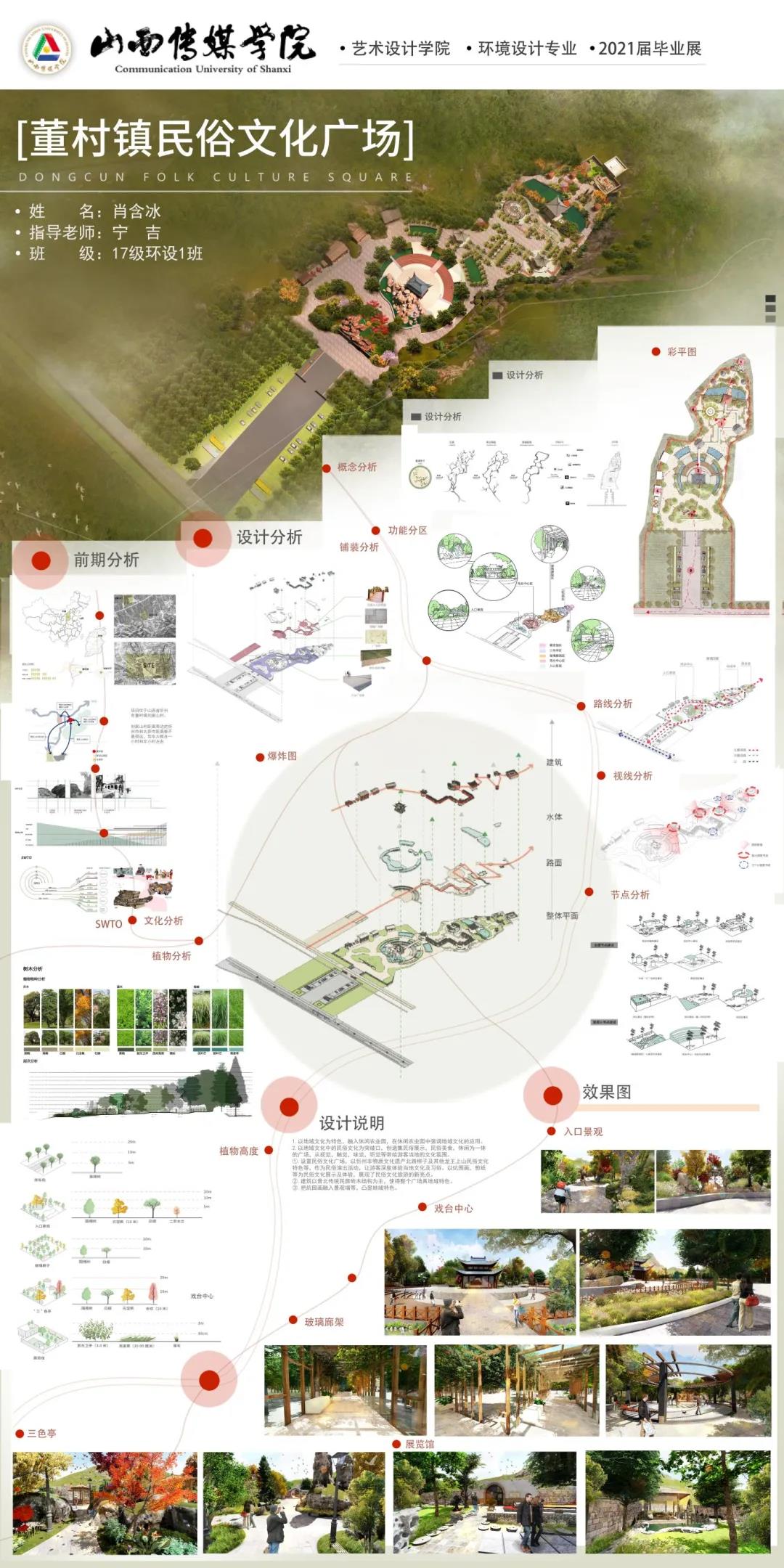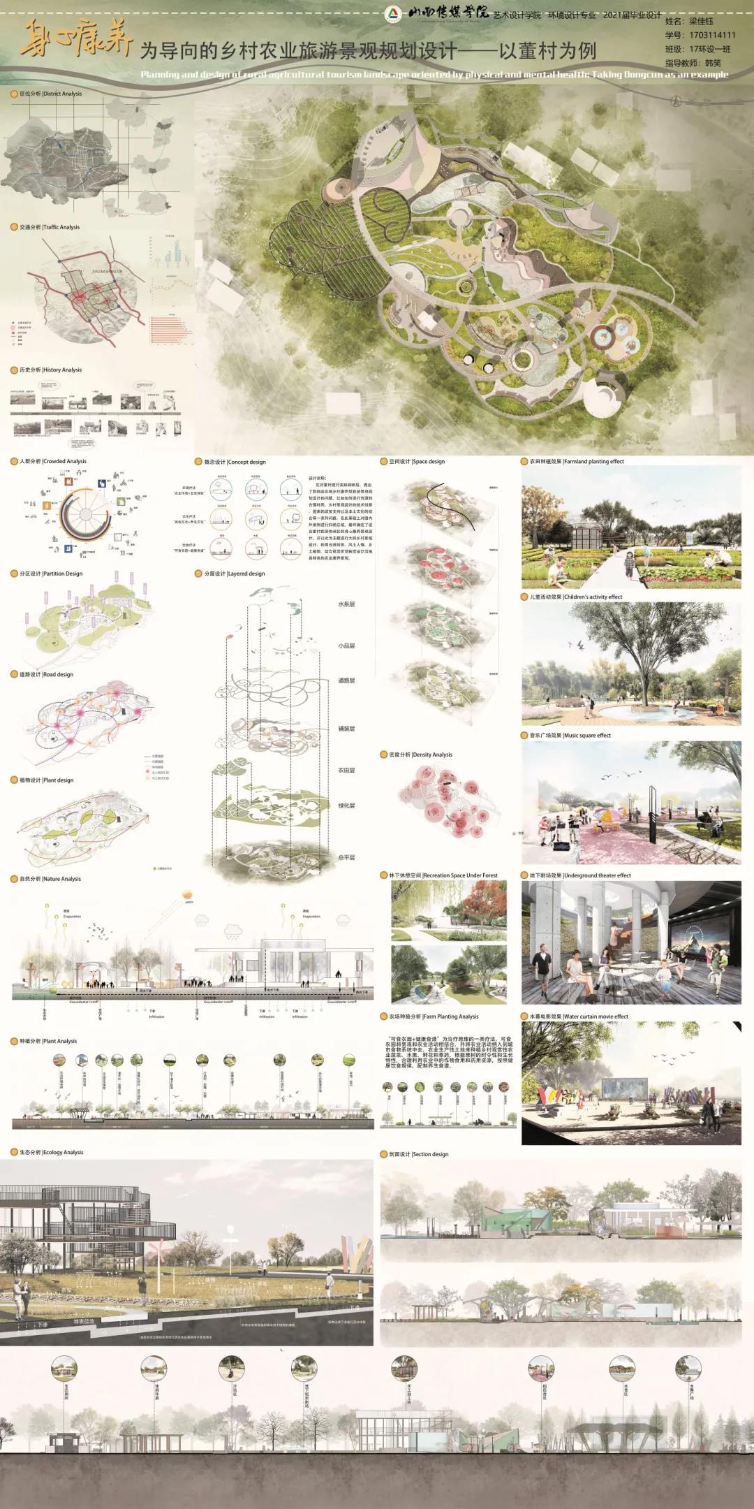 本届毕业设计选题既有关注现实、关注生活所传达出的思考;也有关注前沿,关注未来所表现出的探索;还有立足地方、关注地方乡村文化传承的使命。每一件作品在短暂却又漫长的时光中积累、沉淀、尝试和诞生;每一件作品都承载着同学们的理想和希望;每一件作品的背后都凝聚着指导老师和同学们耕耘的汗水、不懈的努力与执着的追求。从同学们的作品中,真实地呈现出环境设计专业在本科阶段的教学成果。祝愿环境设计专业2021届毕业生在未来的生活中能够坚实的走好每一步,设计属于自己的美好蓝图。本次设计展,设计主题聚焦两点:一是以九龙滑雪场的空间更新为例探讨人与空间的关系;二是从多角度思考与探索董村镇旅游规划设计。