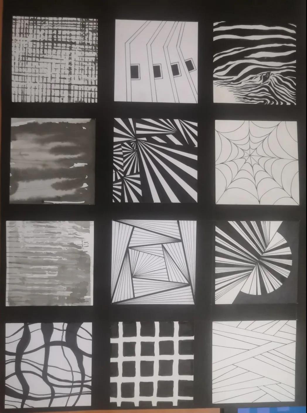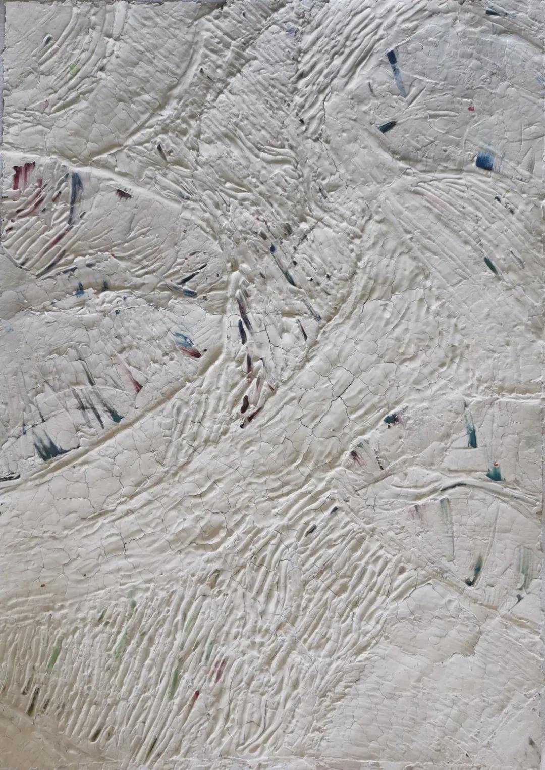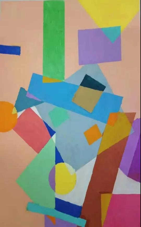 以撕碎的纸片为基底,粘贴在画面中白色与基底色的结合是相辅相成的。