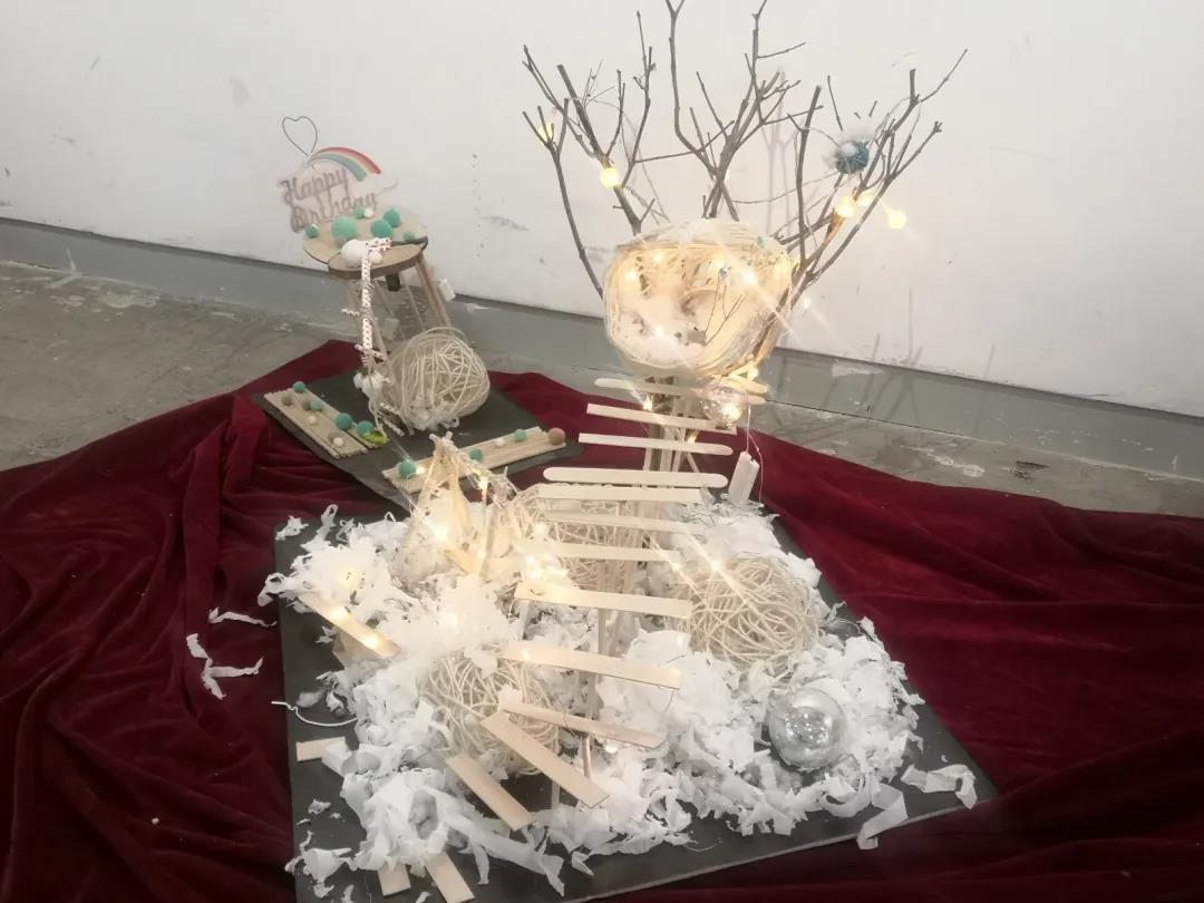 采用简单的材料,不同方式的排列组合累积,通过手工搭建 摆放的方式,勾勒和建造出内心的理想世界,绘制出美好蓝图中的摩尔庄园。