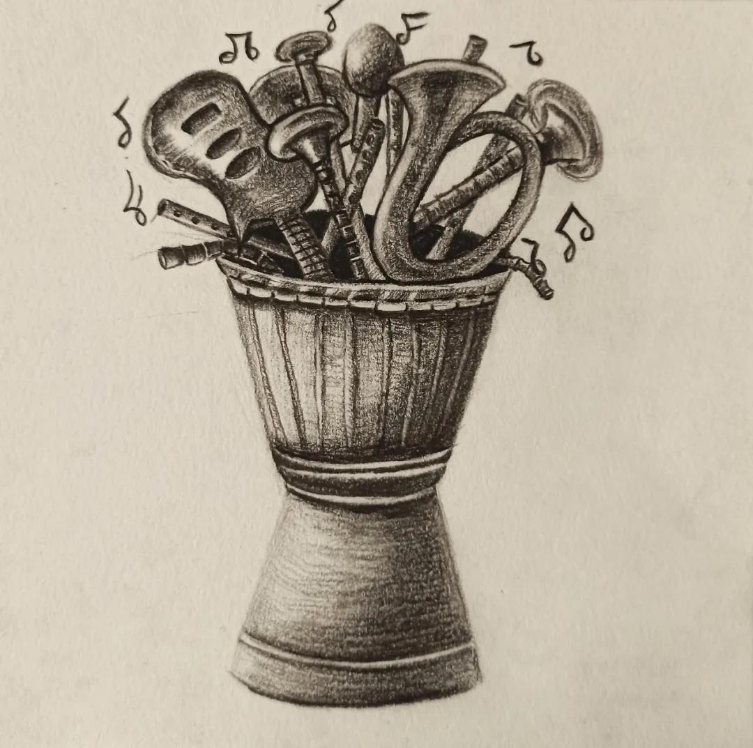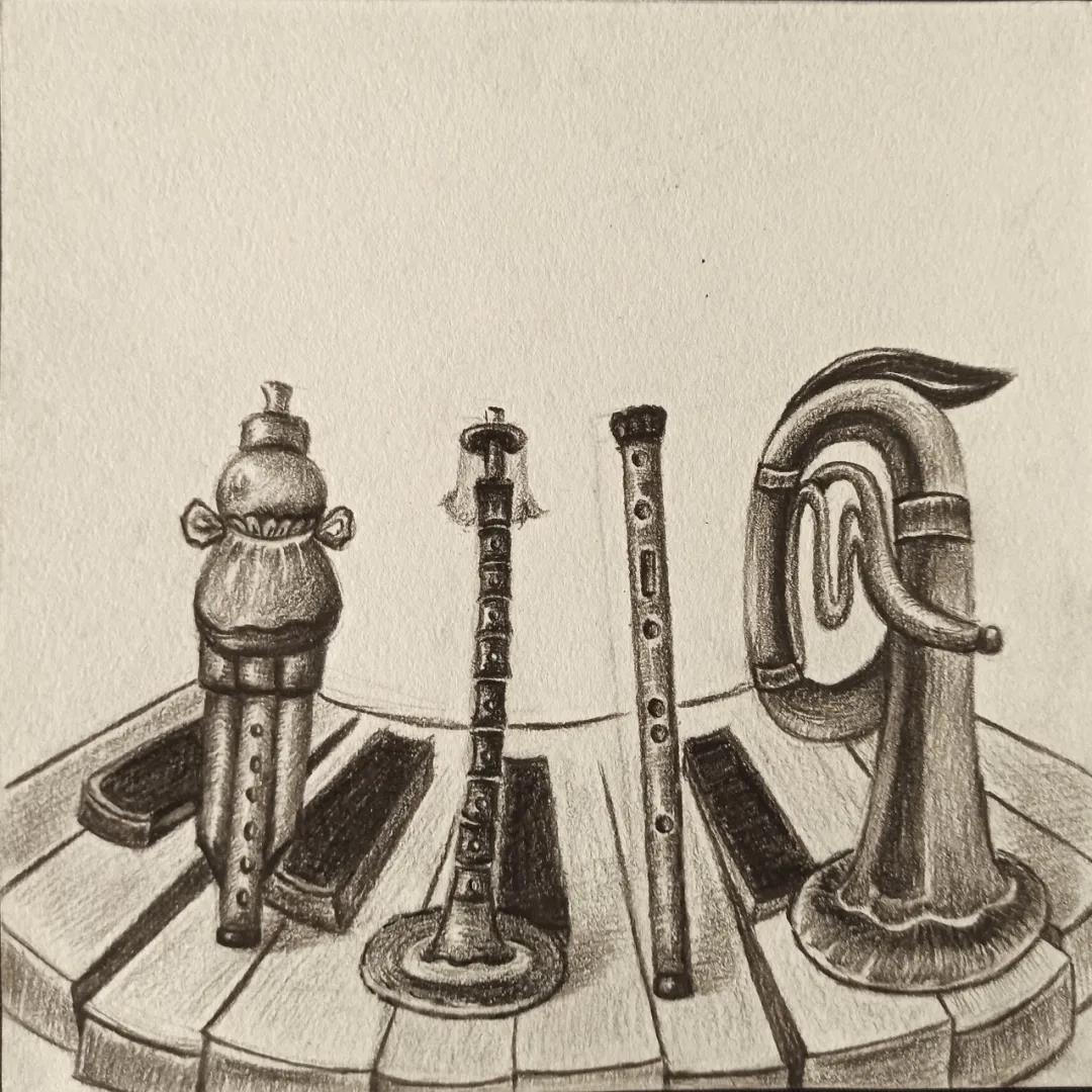 这是由葫芦丝,唢呐,笛子,大号构成的四种乐城里的人物,他们形态各异,但关系友好,经常聚会聊天,他们随便的几句话语都是一首美妙的乐曲。