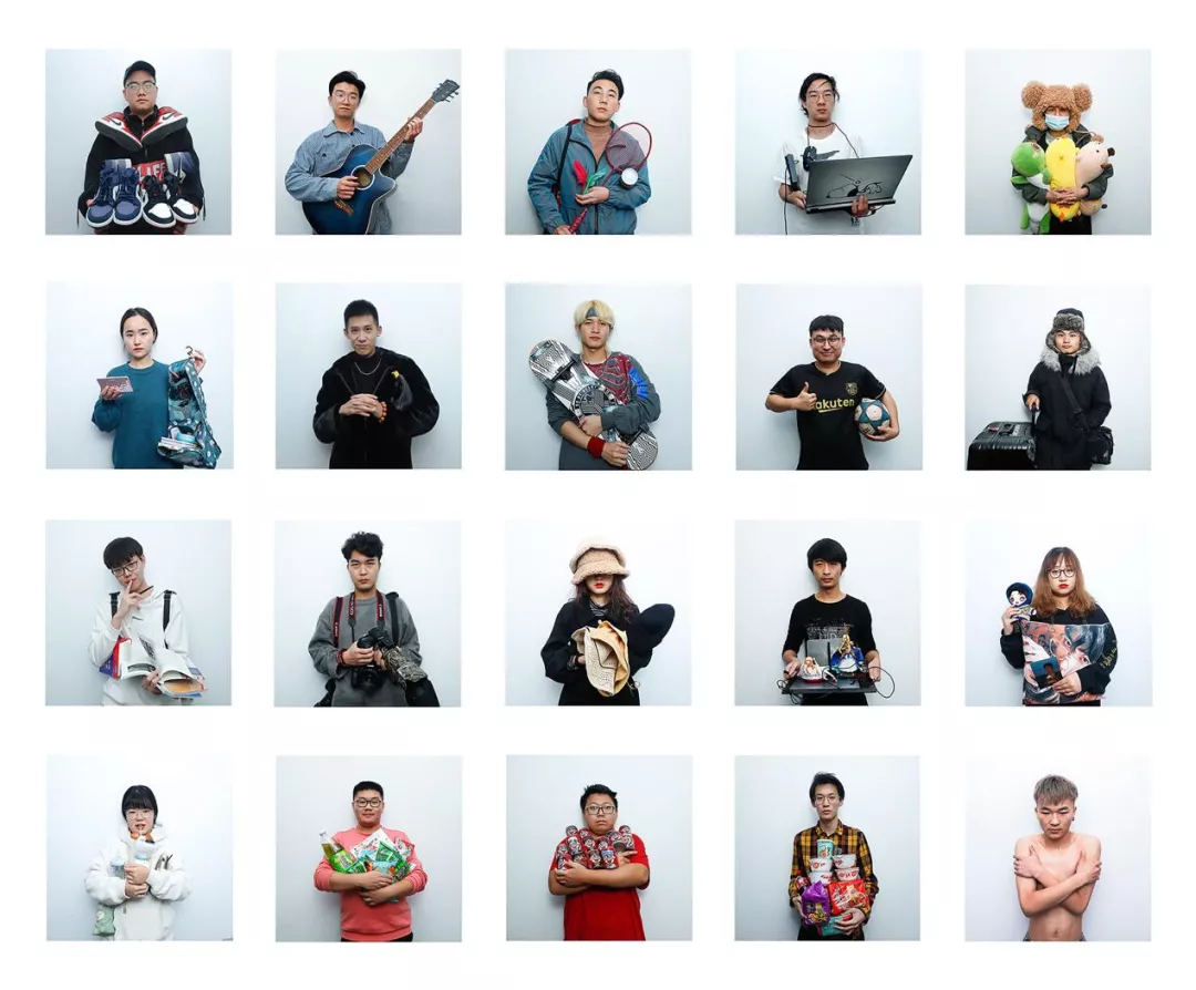 每个人来到这个世界上都有着自己所珍爱的东西,这些东西可能是兴趣所向,也可能是最能代表自己的物件之一。每个人都是独特的个体,画面采用一样的构图,一样的形式,在整体上得到一定的统一。画面的人物,有着共同点但又散发着独特的魅力。