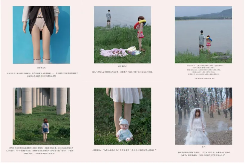 作品以社会新闻事件为基础创作,通过置景式观念摄影的手法进行二次呈现。以人偶为主人公,贯穿每个事件每个场景,用“粉色颜料”一遍遍刷着“烂掉的桃子”,用一个个掩饰来诉说令人心碎的故事。