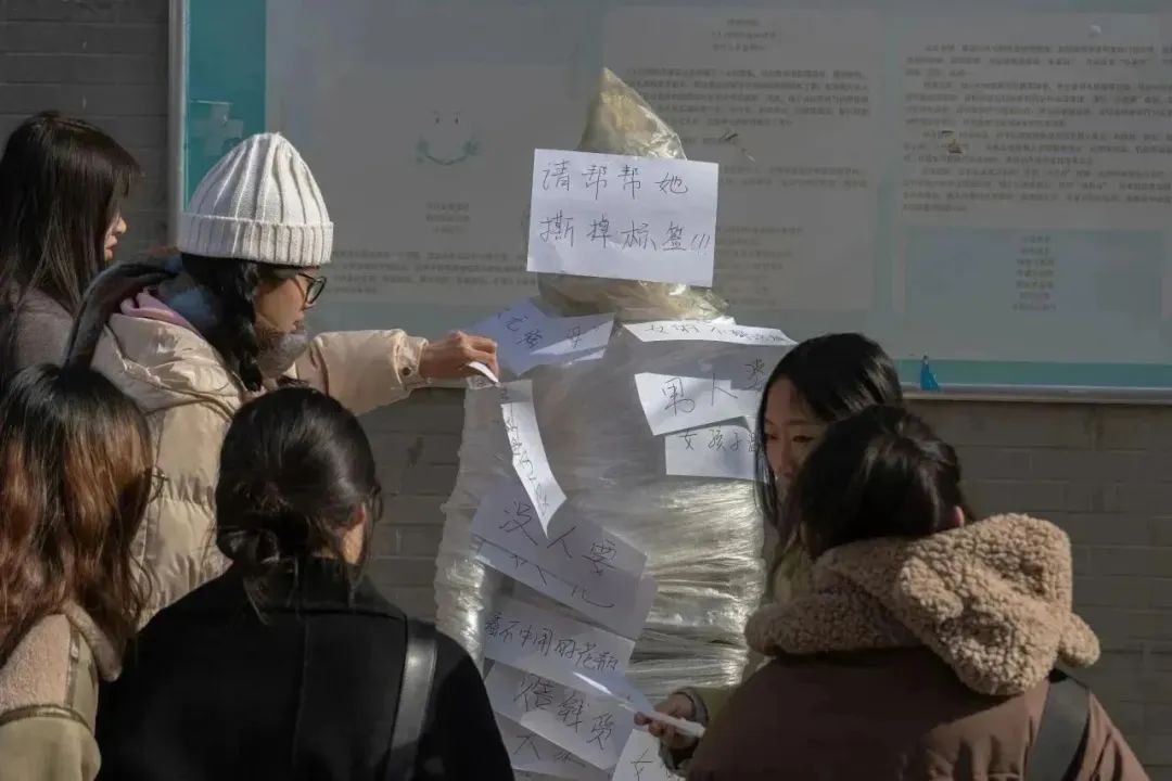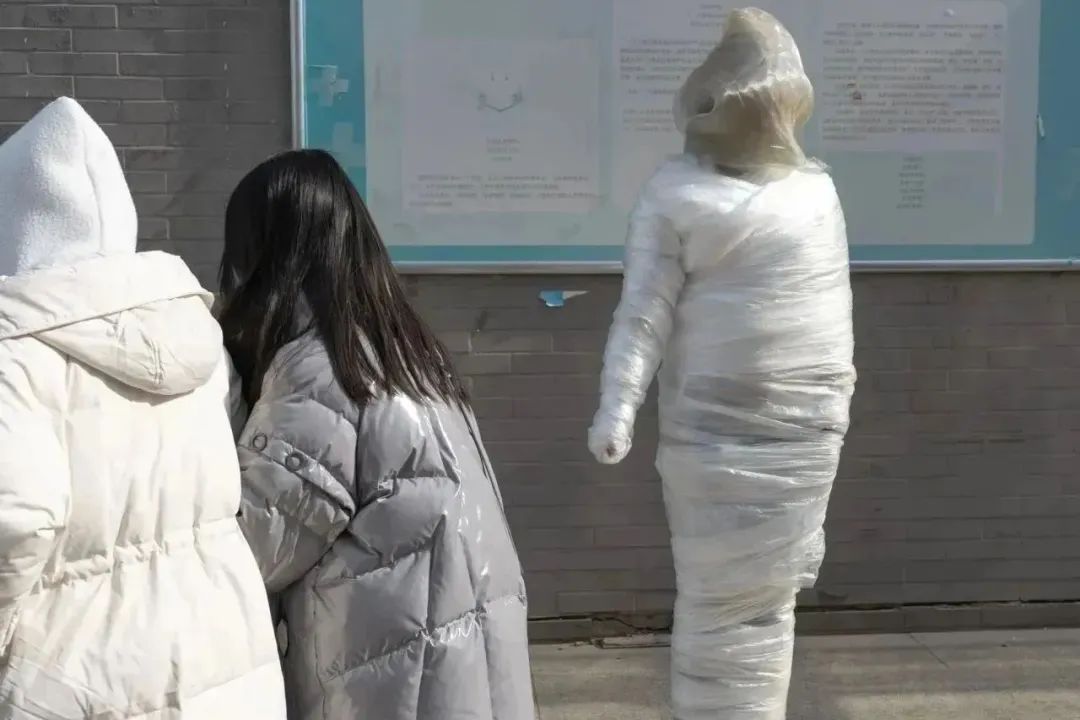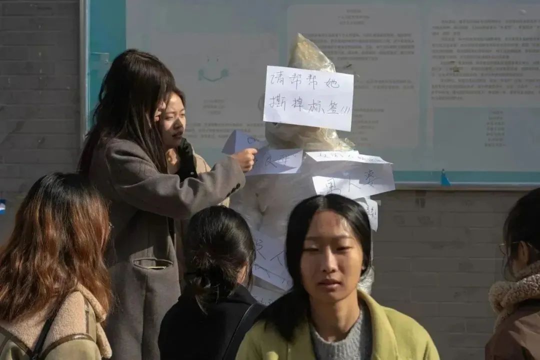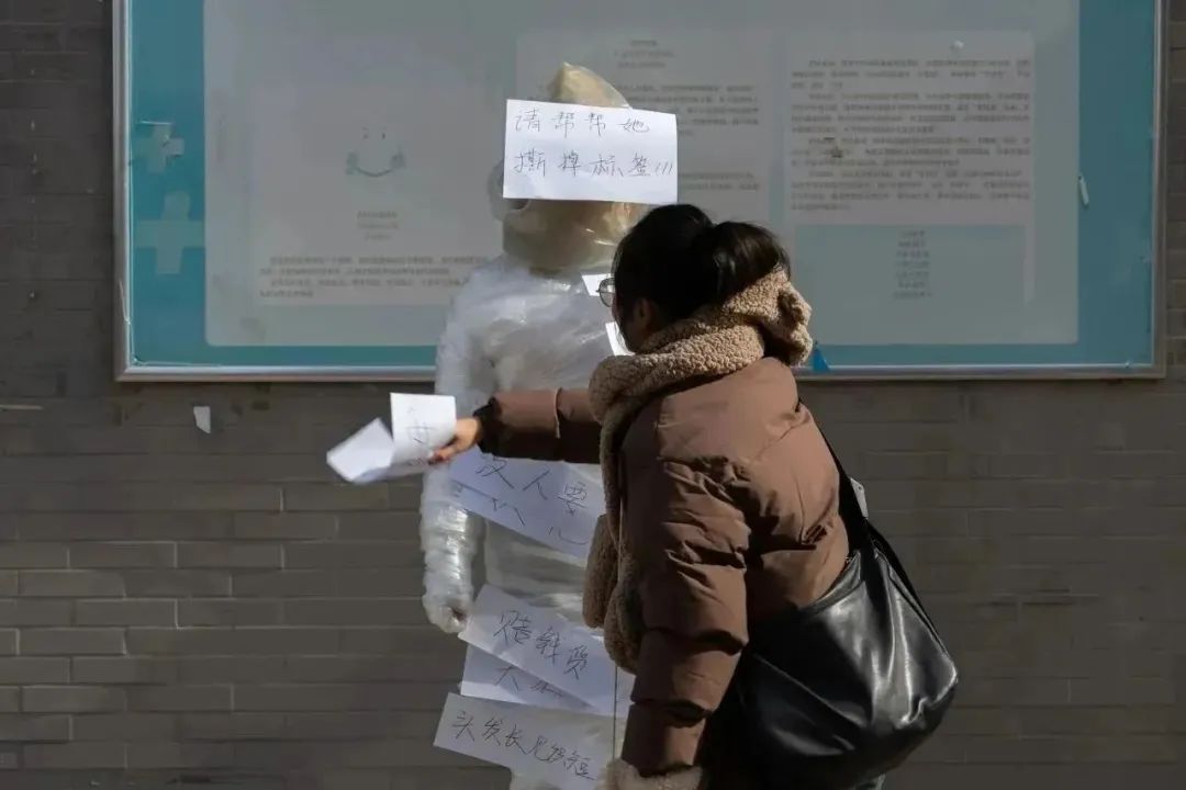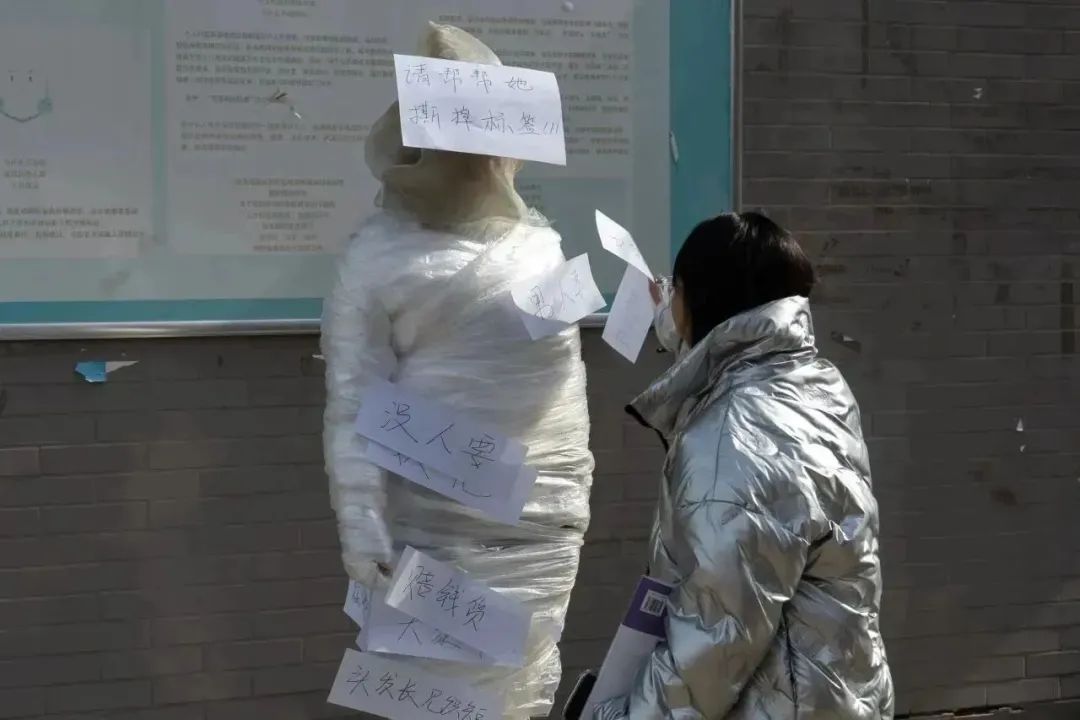 作品简介:作品通过在校园内进行了一次撕标签的行为艺术表演,将自己包裹成一个完全动不了的人,将头也包裹住,这一行为代表着我是无名的,留有一只胳膊是想告诉大家我曾挣扎过,但还是未挣扎成功,让大家将女性身上的标签撕掉,自由自在地做自己。