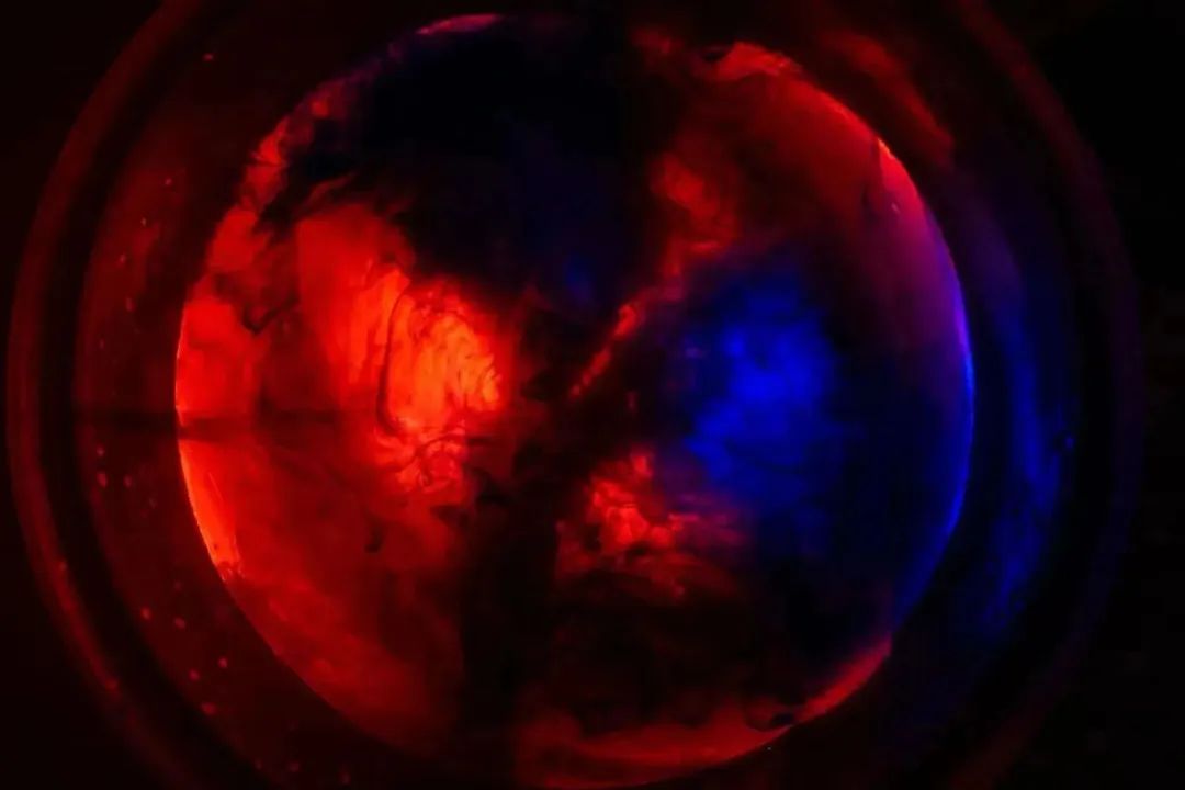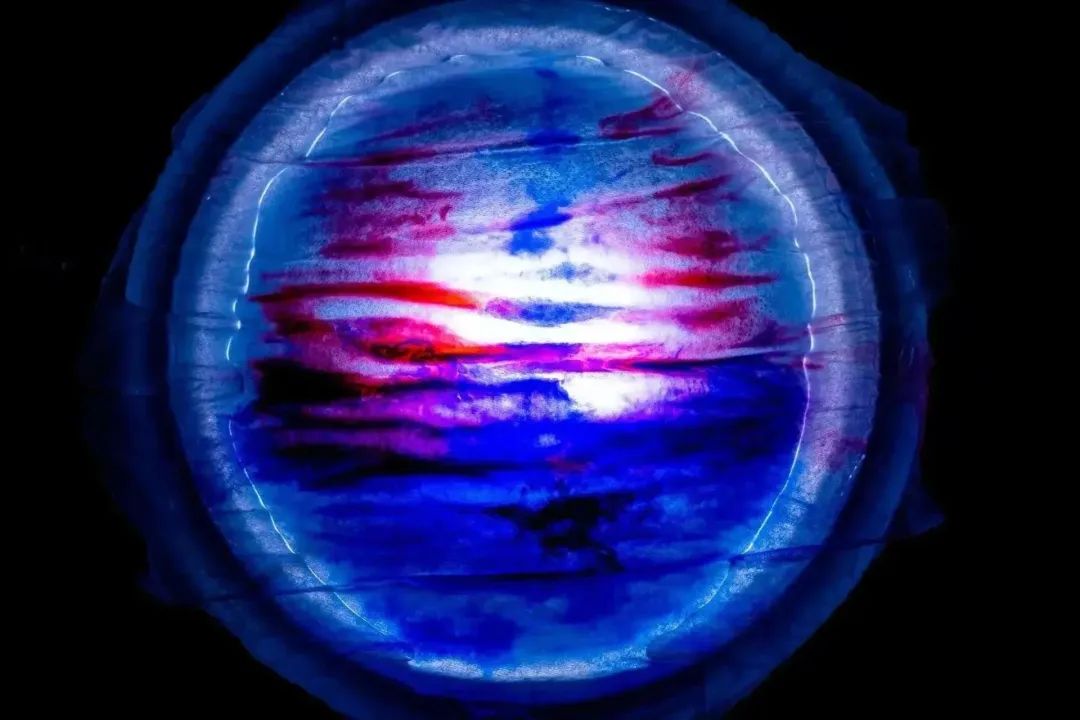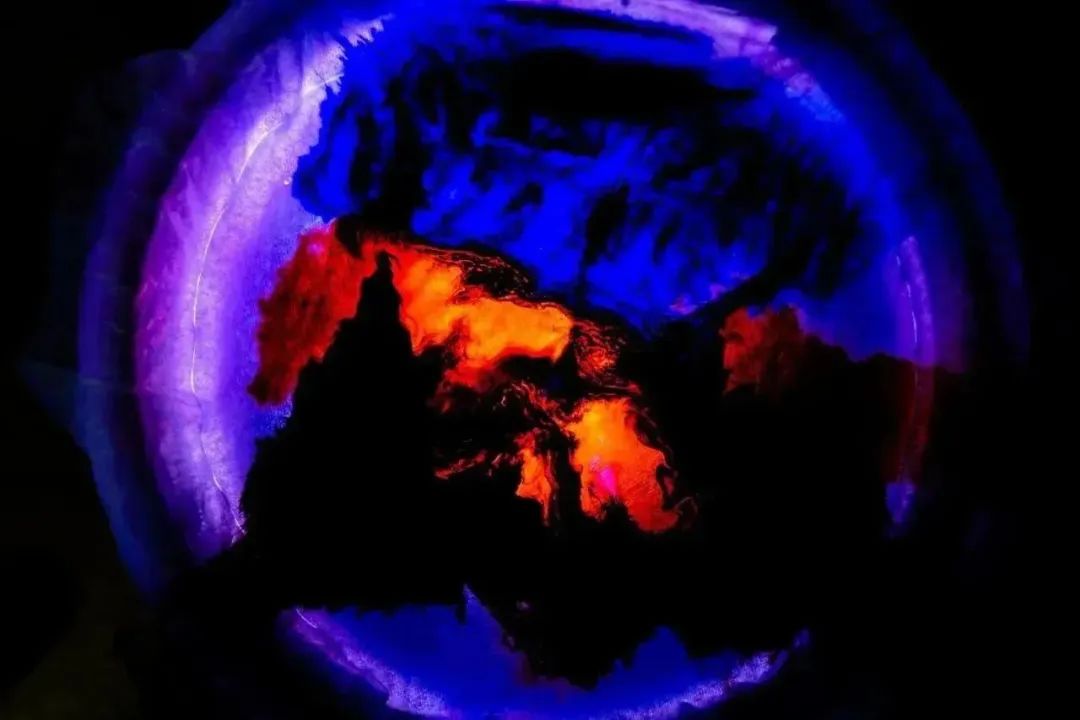 作品简介:用墨水来代表地外空间,用红蓝墨水来代表地外物质。光和色的交织诡谲而神秘,就像形似墨鱼的克苏鲁掌控着超自然的一切。