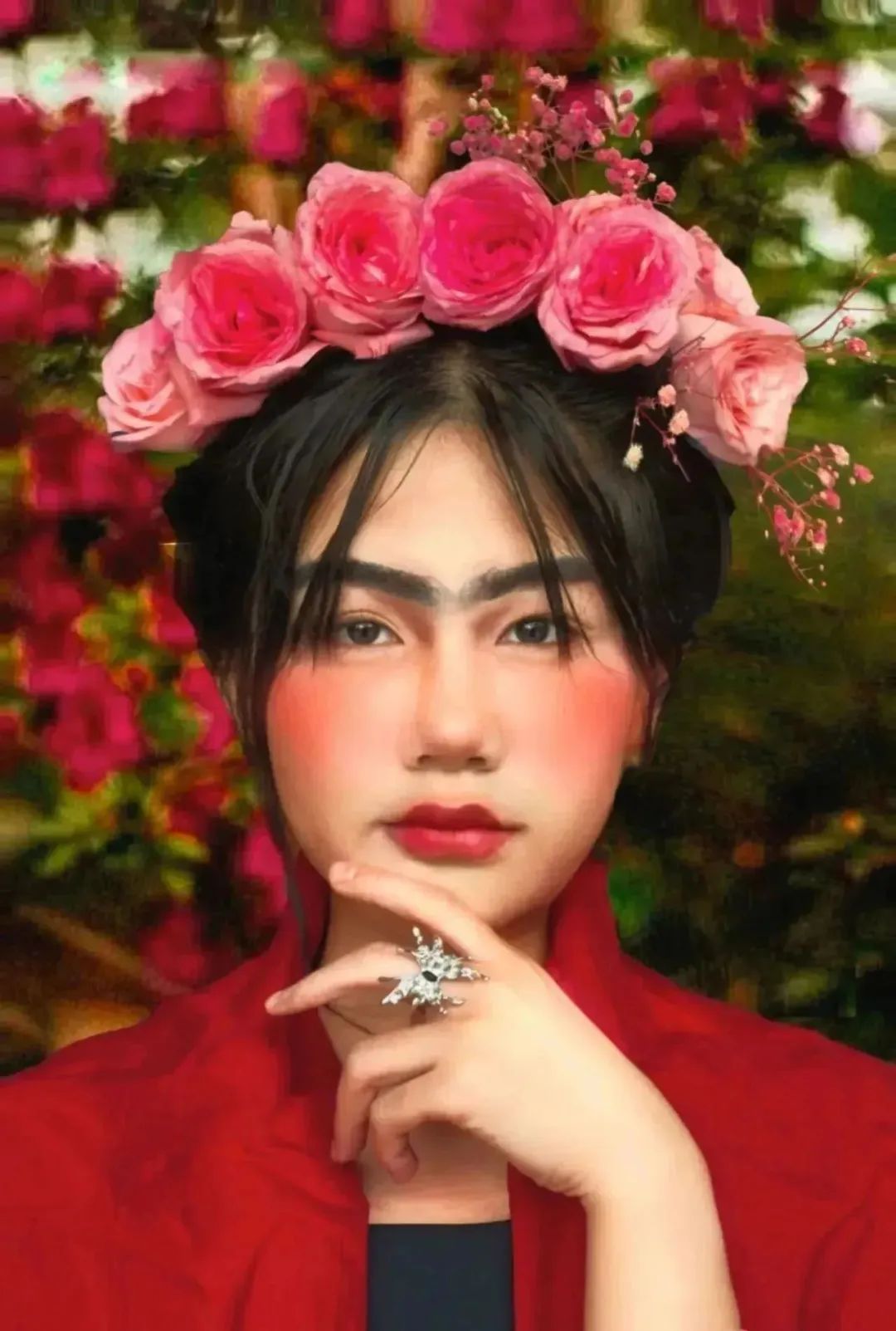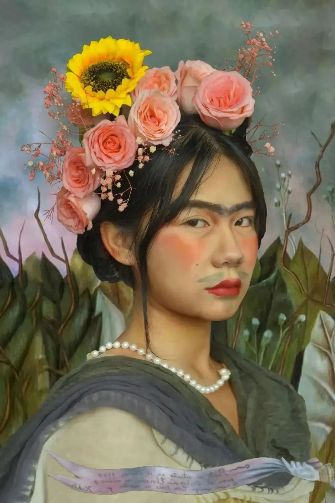 作品简介:弗里达·卡罗 ——“用苦难浇灌的墨西哥玫瑰”。她是一位独特的艺术家,像是烈火中燃烧的玫瑰,“热烈、顽强、自由、野性、生命力”等词都可以在她身上体现。她的作品通常以自画像的形式展现,探索自身的身份、痛苦和梦想。她的故事和作品也深深吸引了我,所以我以摄影创作的方式致敬这位杰出的艺术家。