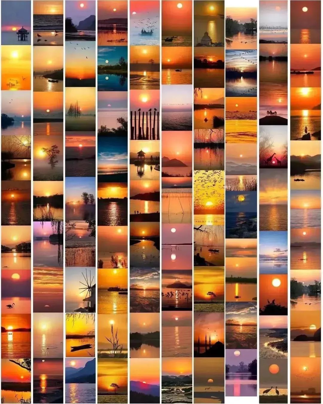 作品简介:这组作品采用了对现成图像再创作的方式,收集了一百张湖面日出的照片,将它们进行拼接组合在了一起,通过这一方式对现成图像再创作进行了一些新的尝试,从而使照片展示出一种全新的面貌。
