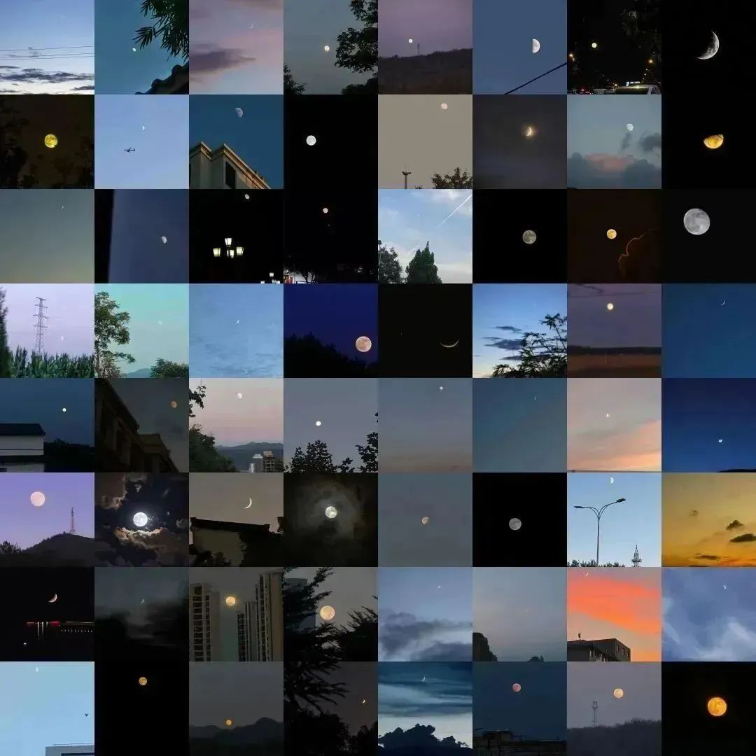 作品简介:把网络上天南地北的人拍摄的各种月亮收集起来整合成一张图片,每个人都是这幅图像的创作者。