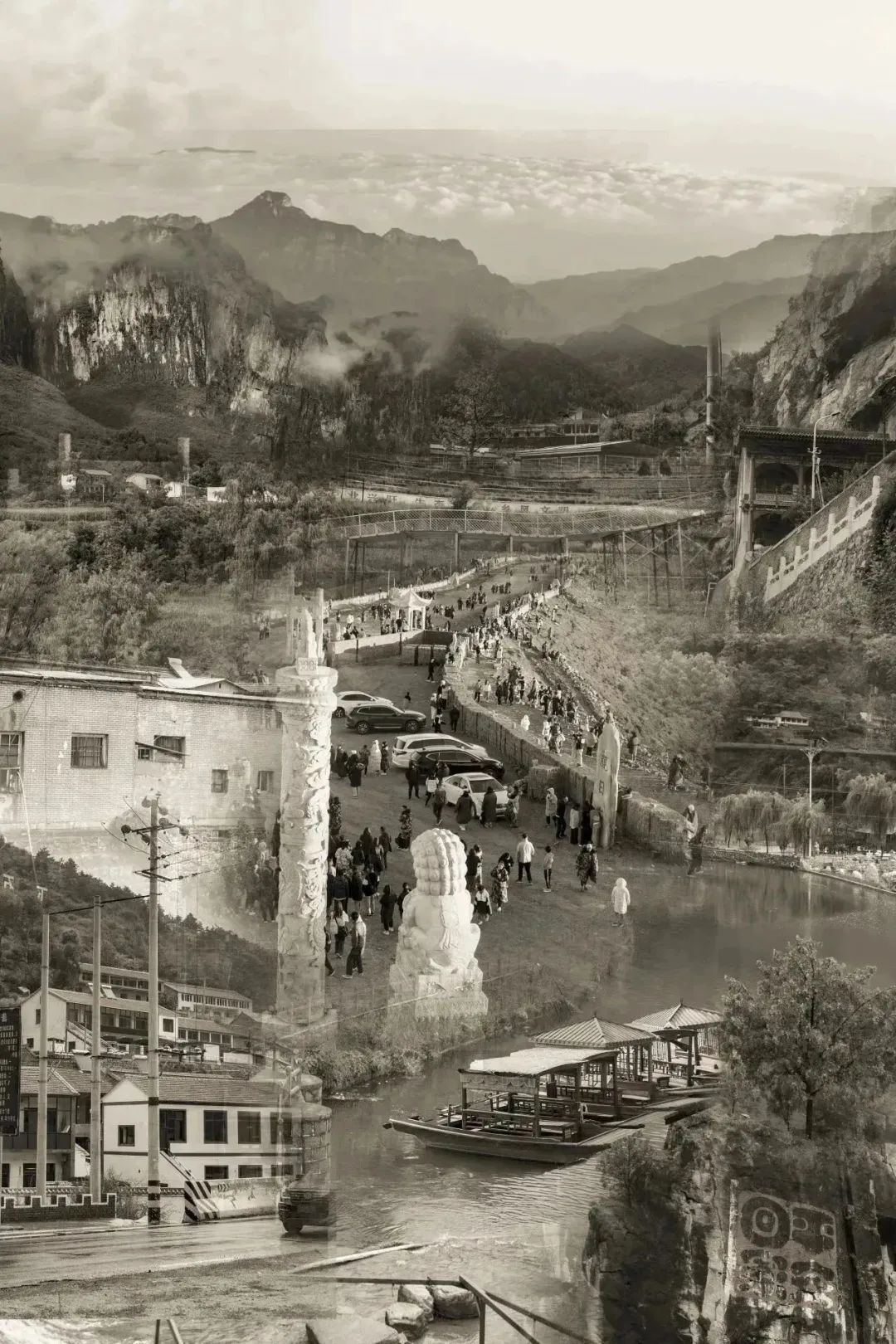 作品简介:借助拼接的手法创造出一个全新的景点,再利用做旧的方法将画面进行统一变成一张老照片。