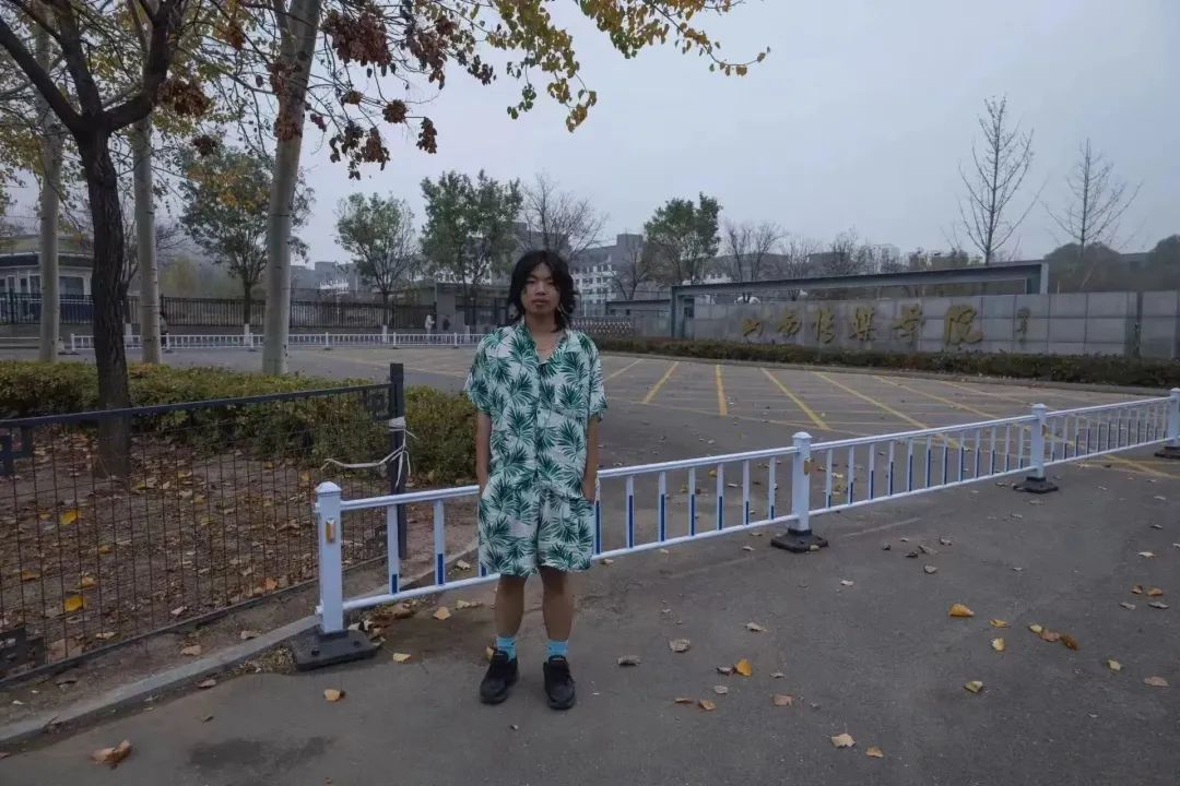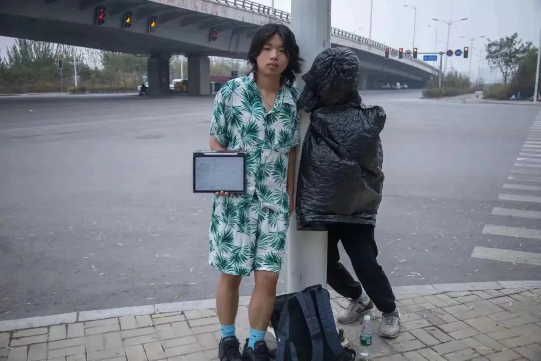 作品简介:冬天穿着单薄的短袖短裤出了校门一直往右走二十公里,每一公里拍摄一张自己拿着手机的照片,手机里显示地图。生活中有很多束缚,各种意义上的束缚,这些束缚限制了我们自由,我把保暖的衣服代表着束缚着我们的东西,在冬天穿着单薄向右走想表达人们要拿出勇气挣脱束缚,追寻自己的梦想,才能脱离物质世界,实现精神世界的突破。