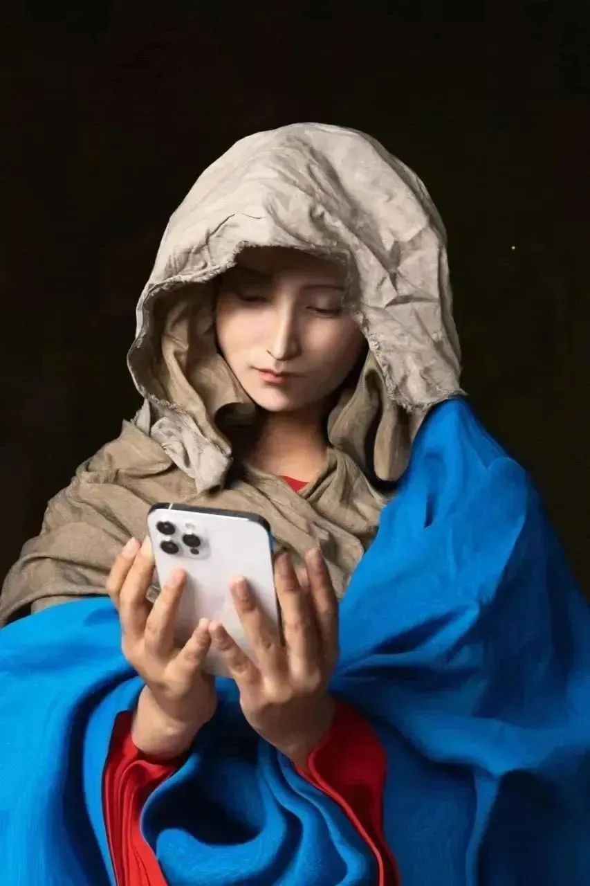 作品简介:随着现代社会的发展,科技越来越发达,电子产品的使用越来越普及,随之而来的还有它所带来的危害,这组挪用经典就是想通过仿拍名画更改或添加相关电子产品元素,告诉人们电子产品不仅带来了便利,随之带来的更多的是危害。