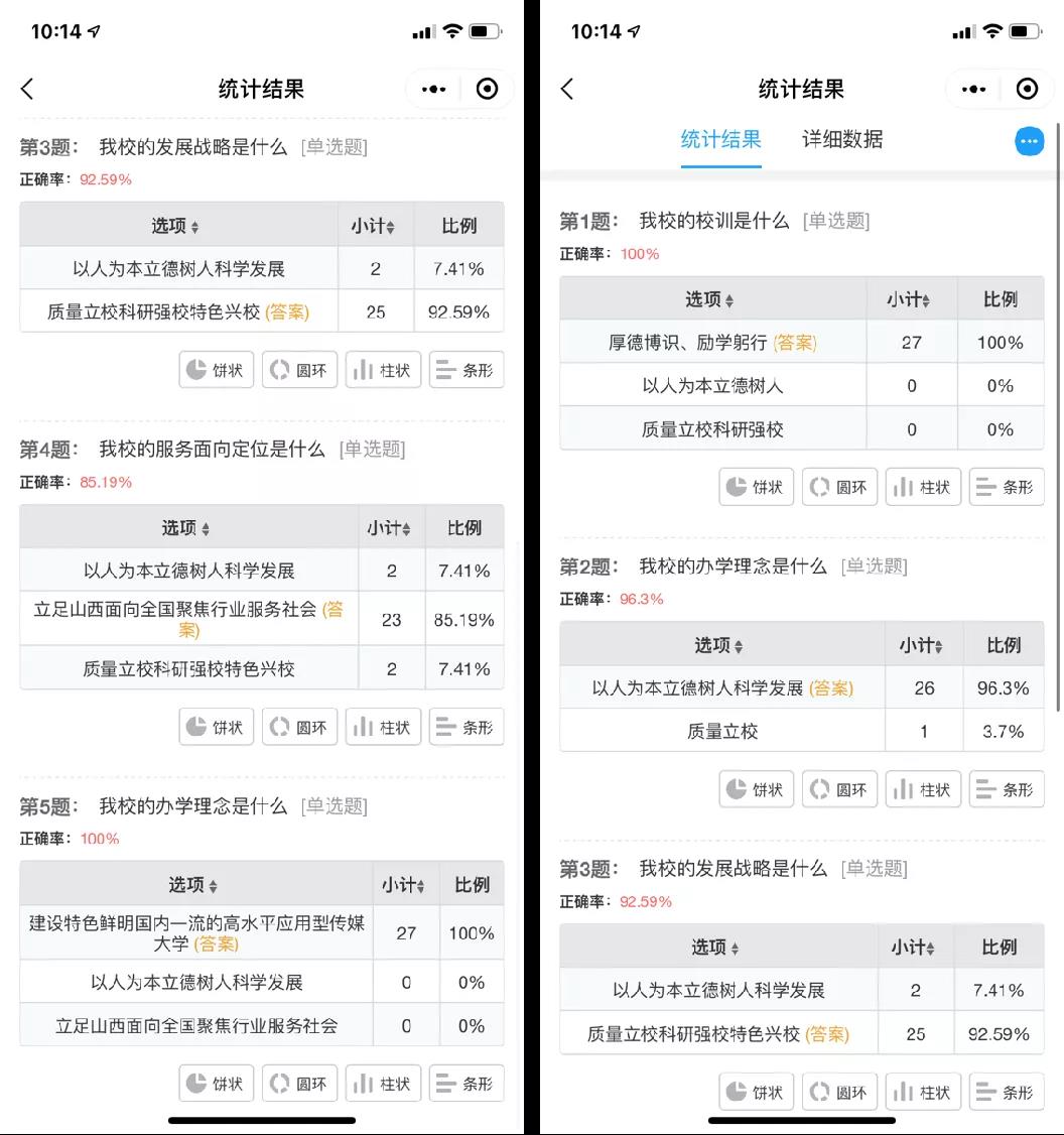 各班级主要通过评建知识学习主题班会、班级群内每日一学、每日一题、班级进行评建知识测试等方式开展评建知识学习。