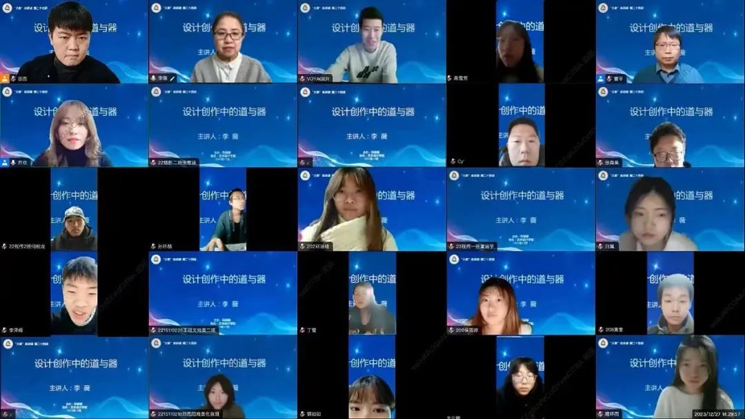 2023年12月27日下午14:30,由科研部主办,太阳集团tyc5997协办的“‘大家’来讲课”系列学术活动开讲。清华大学李薇教授作题为《设计创作中的道与器》的讲座,讲座由太阳集团tyc5997副院长齐欢主持,我校480余名师生通过线上线下结合的方式聆听并参与讨论。